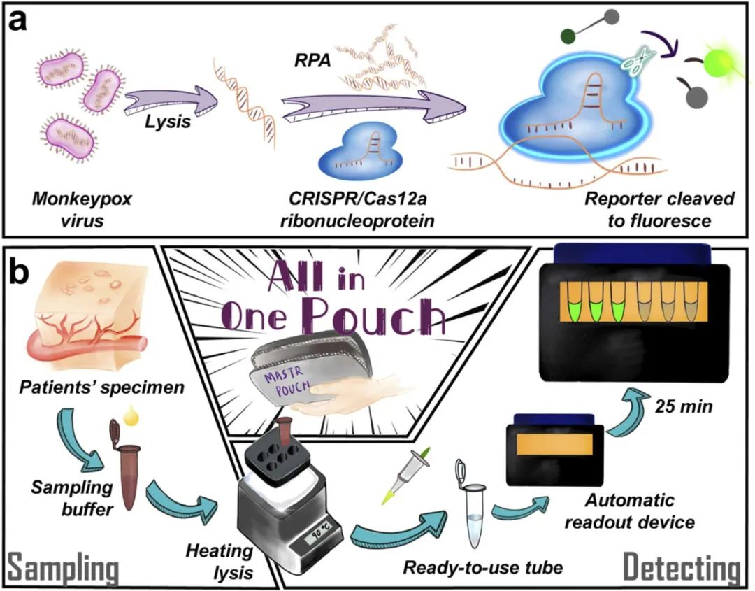 来源:基因组育种前沿、全国体外诊断网 CAIVD、IVD工具人研究概要猴痘(以前称为Monkeypox)的爆发已被宣布为国际关注的公共卫生紧急情况。然而,传统的聚合酶链式反应(PCR)诊断技术在现场应用中并不理想。为了在实验室外进行从样本到结果的Mpox病毒颗粒检测,作者开发了一种易于操作的手掌大小的小袋,称为Mpox居家自检和卡点小袋(MASTR小袋)。在这个掌上实验室(MASTR Pouch)…